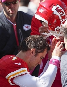 Who I (and most Chiefs fans) have frustration with most Sundays. Our GM, Scott Pioli, rolled into town hyped up as ‘the brains behind the Patriots dynasty’, and he’s brought in as many of his guys as humanly possible (including Coach Romeo and Cassel). But the honeymoon period has ended and things are swiftly moving in the wrong direction. Pioli of course never takes the field, never has to stand on the sideline. But the guy who most symbolizes his tenure as GM has to go under center. At least he did until he got his block knocked off…